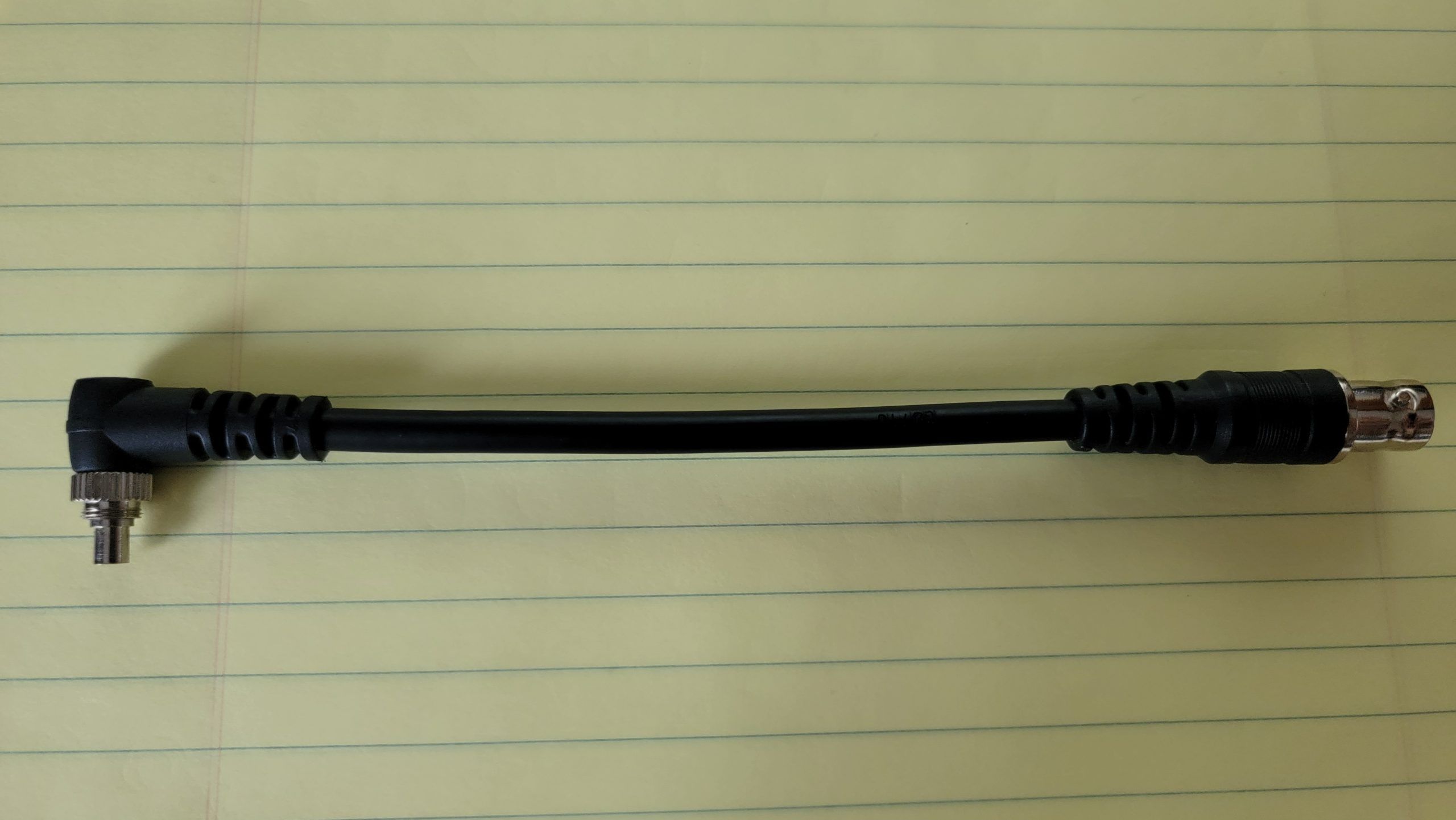 That adapter ends with a female BNC connector, just like the connector on the back of my Zoom F4.  So that means that I can (in theory), connect a “T” adapter to the back of my Zoom F4 Timecode OUT, split the cable in to 2 and send a cable to each camera’s adapter (that I show in the above photo), setup the F4 to send timecode, setup the cameras to receive timecode… et voila!
